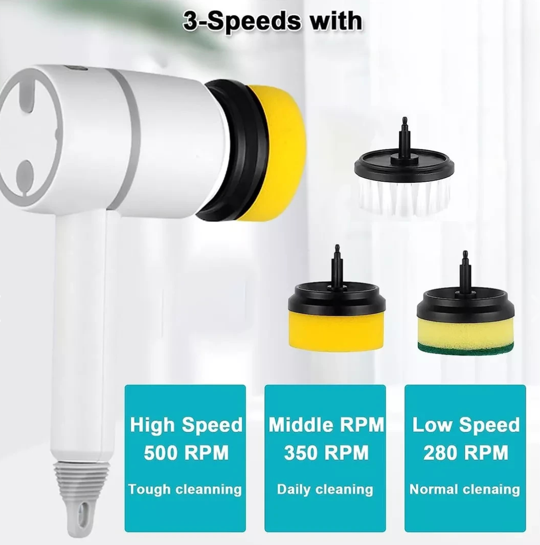 Cepillo limpiador inalámbrico, cabezales intercambiables, cepillo de limpieza eléctrico recargable giratorio, cocina -Cepillo lavaloza eléctrico de 3 velocidades: este limpiador cuenta con 3 opciones de velocidad de limpieza (baja, media, alta).Por lo tanto, estos cepillos de limpieza para el hogar y cuando se utilizan con un agente de limpieza pueden ayudarte a deshacerte fácilmente de la suciedad, para ayudarte a hacer que tus tareas de limpieza sean eficientes y fáciles y hacer que toda la casa se vea nueva.