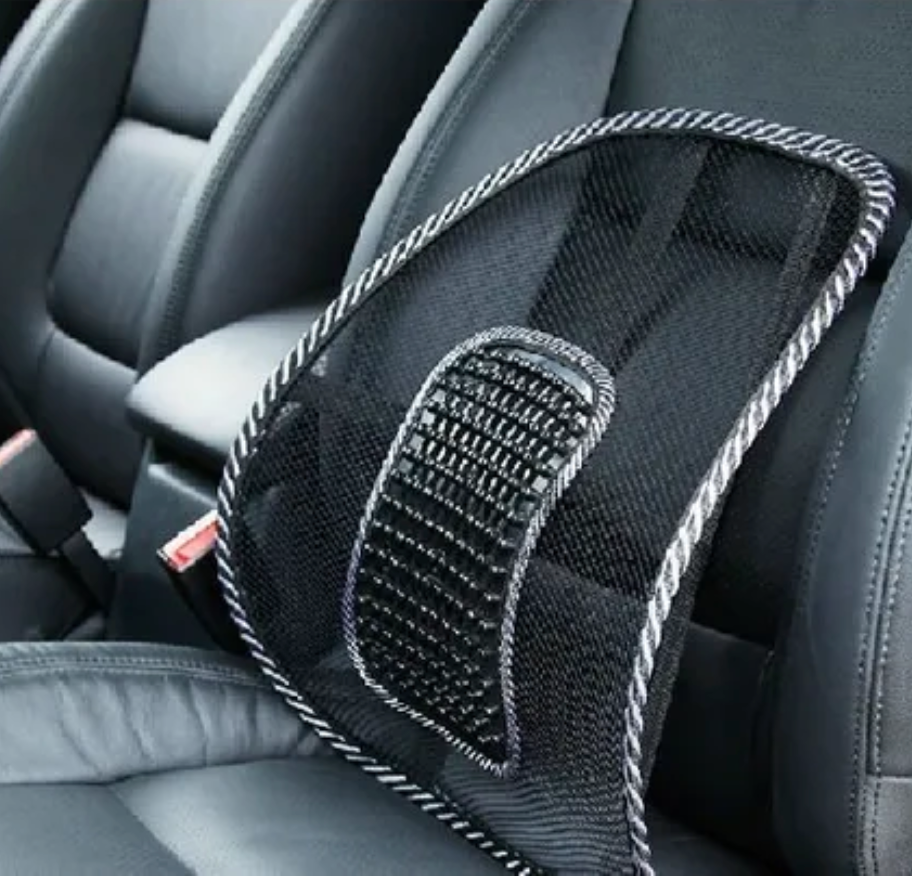Corrector Postura Espalda Cojín Lumbar Espaldar Sillas Corrector Postura Espalda Lumbar Silla Carro OficinaIdeal para mejorar la postura en en cualquier silla con espaldar, como la silla del escritorio en la oficina o el estudio y la silla del carro para viajes cortos o prolongados. Mejora tu postura y evita el dolor de espalda.Características:- Fomenta una posición cómoda.- Masaje estimulador.- Correas ajustables.- Diseñado para aliviar el estrés y mantener refrigerada la zona lumbar.- El apoyo lumbar se ajusta a la curva de la médula espinal.- Tamaño: 36 cm x 38 cm.- Fácil de colocar a cualquier silla con espaldar.- Diseño sobrio y elegante.- Color negro