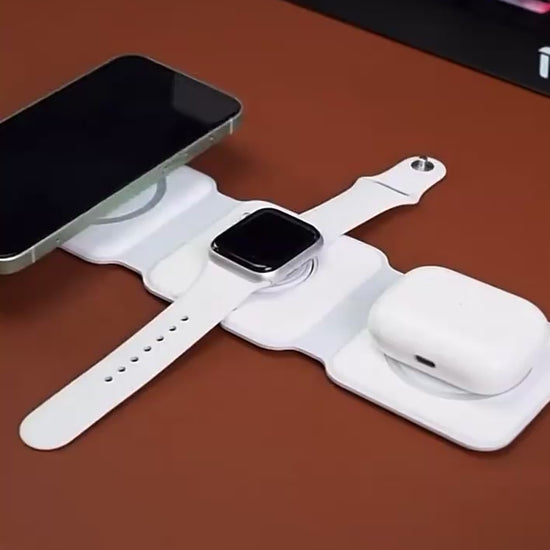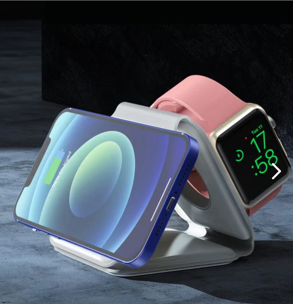 Tiene tres puntos de carga inalámbricos, lo que te permite cargar tu celular, reloj inteligente y audífonos con facilidad. Carga convenientemente tus accesorios diarios simultáneamente en una ubicación central e inalámbrica. Es compatible con MagSafe, encaja a la perfección tu celular en su lugar para una alineación magnética óptima. Pliega y disfruta usando el cargador como soporte de visualización para ver películas, amigos de FaceTime o transmitir videos. Ligero y compacto, el dispositivo es fácil de llevar en el bolsillo o en el bolso. El diseño neutral y elegante es perfecto para el hogar, para los desplazamientos o para la oficina.