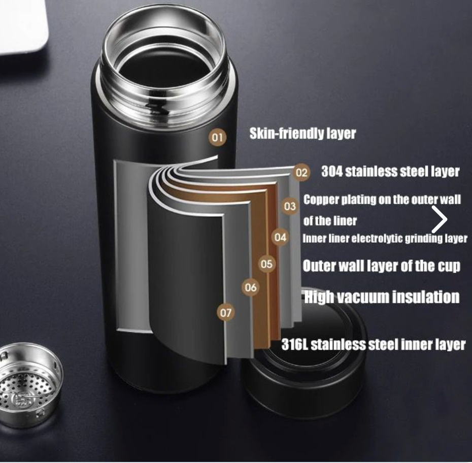 Smart Sip – Termo de metal con pantalla inteligente que muestra la temperatura en tiempo real. Mantiene tus bebidas calientes o frías por horas, combinando tecnología y diseño elegante para que disfrutes cada sorbo a la temperatura perfecta.